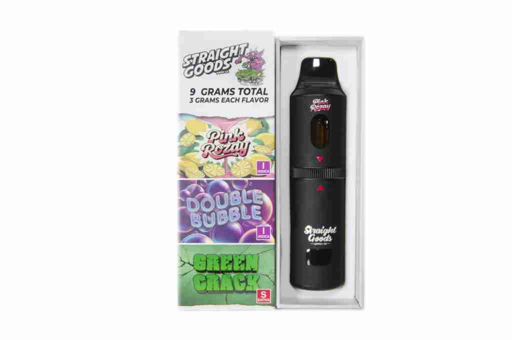• Straight Goods Triple Chamber Vape – Pink Rozay x Double Bubble x Green Crack (3 Grams + 3 Grams + 3 Gram)